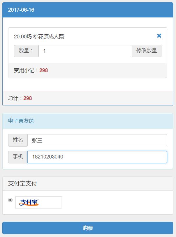 7. 选择支付方式,点击【购票】按钮,进入支付环节。